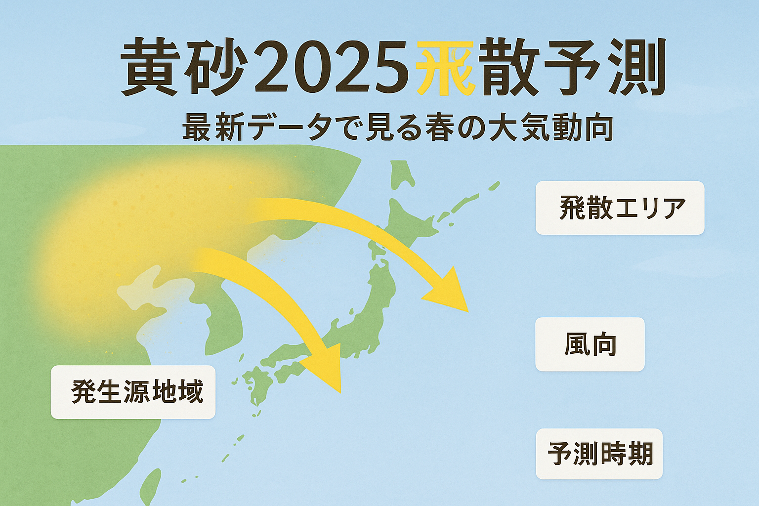 黄砂は主に中国内陸部の砂漠地帯で巻き上げられた砂塵が、偏西風に乗って日本へ運ばれてくる現象です。2025年も春を中心に飛散が観測されたほか、秋になってからも西日本〜東日本を中心に黄砂が飛来する予想がたびたび発表されています。特に低気圧や前線の通過後に、風向きが変化して黄砂が流れ込むパターンが目立っています。