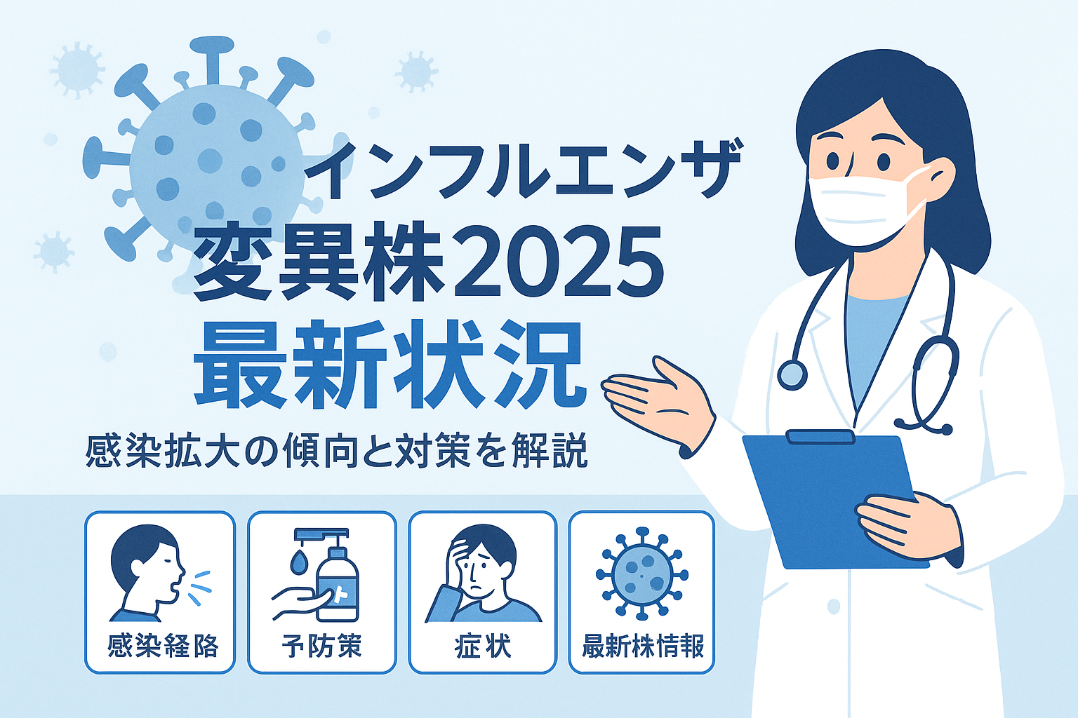 この記事では「インフルエンザ 変異株 2025 流行状況 最新」という検索ニーズにこたえて、2025年時点で分かっているインフルエンザの変異株情報と、日本国内の流行状況を整理して解説します。基準日はであり、インフルエンザは状況が日々変化するため、ここで紹介する内容は最新の公式発表や医療機関の情報とあわせて確認する必要があります。個別の症状や治療については、必ず医師や自治体の相談窓口にご相談ください。